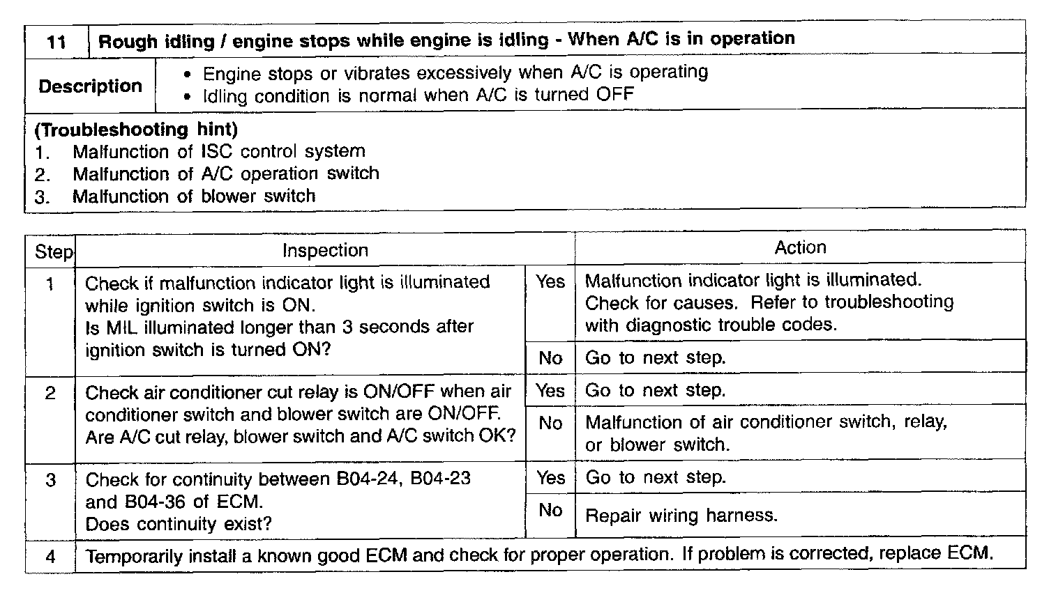 11 - Rough Idling/Engine Stops While Idling - When A/C ON