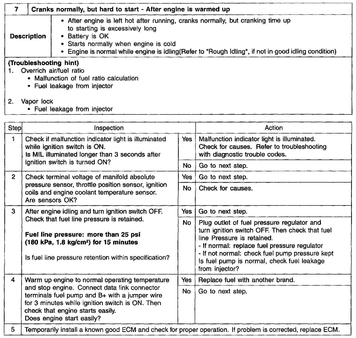 7 - Hard to Start - After Engine Is Warmed Up