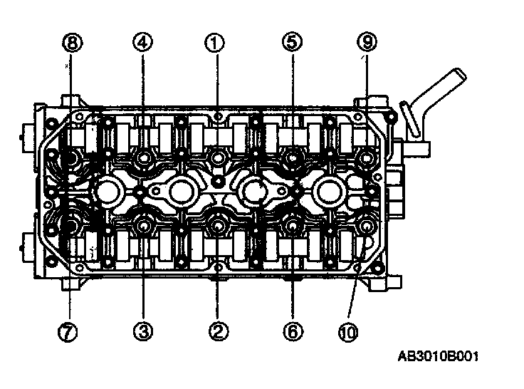 Rotate cylinder head bolts 90° (1/4 Turn) in order shown.