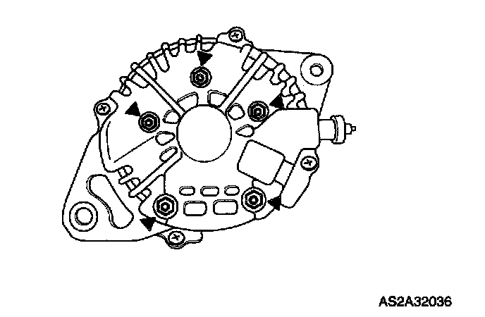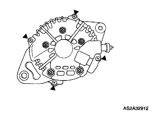 8. Remove five screws holding the rectifier and brush holder.