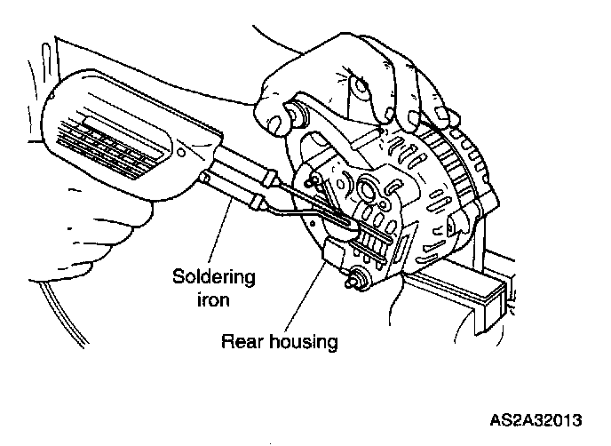 10. Use a soldering iron to remove solder from rectifier and stator leads, and then remove IC regulator.