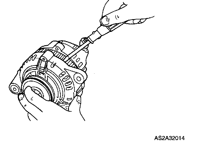 4. Place rotor in a vise and loosen locknut, then disassemble pulley, rotor, and front housing.