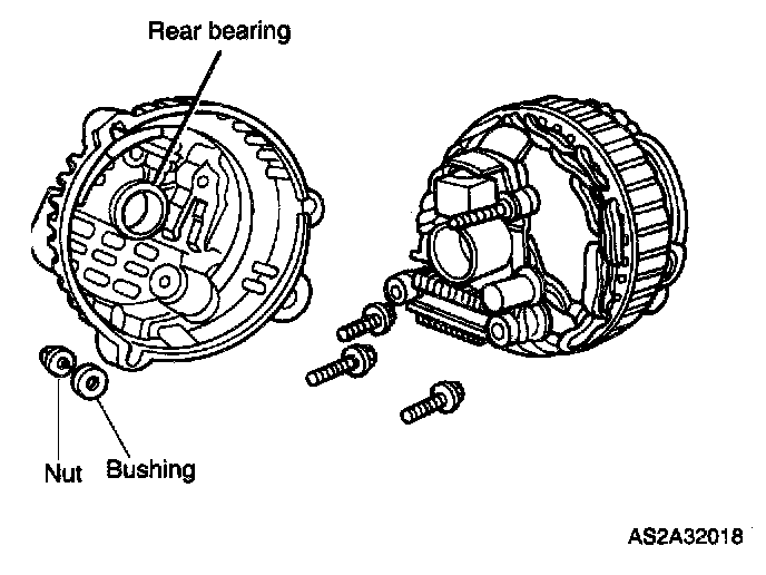 7. Remove B terminal nut and insulating bushing.