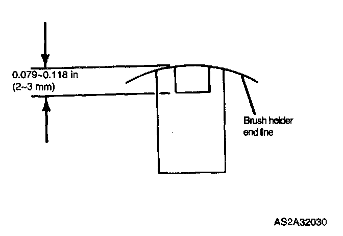 1. Assemble brush, and solder pigtail so that wear limit line of brush projects 0.079 - 0.118 in (2 - 3 mm) out of brush holder.
