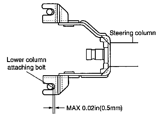 6. To install the steering column, push the steering column in the shaft direction. The clearance between the lower column attaching bolt and bracket do not have to exceed to MAX 0.02 inch (0.5 mm)