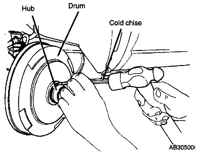 Notice: If it is difficult to remove the brake drum, increase the shoe clearance.
