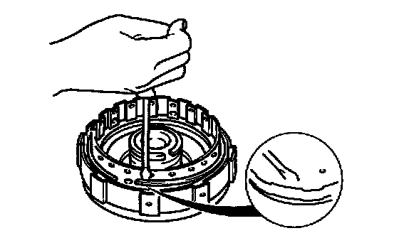 14. Remove coasting clutch piston from coasting clutch drum by applying compressed air through fluid passage.