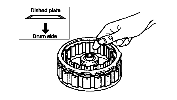 5. Remove snap ring, retaining plate, drive plates, driven plates and dished plate of forward clutch, refer to disassembly.
