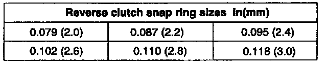 Reverse clutch clearance: 0.035 - 0.047 inch (0.9 - 1.2 mm)
