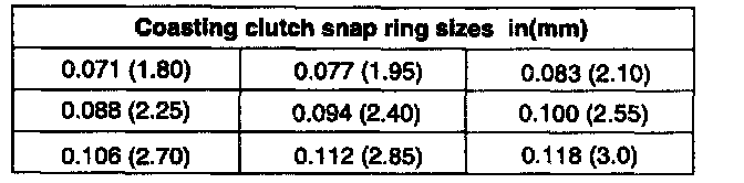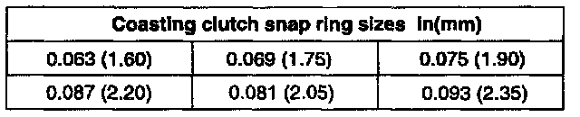 Coasting clutch clearance: 0.039 - 0.048 inch (1.0 - 1.2 mm)