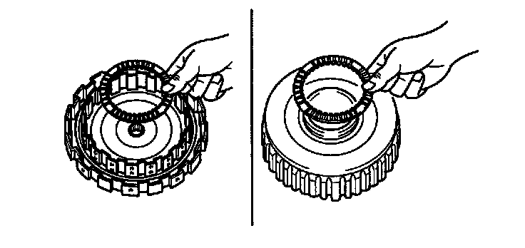 4. Install snap ring half-way down reverse/forward drum as shown.
