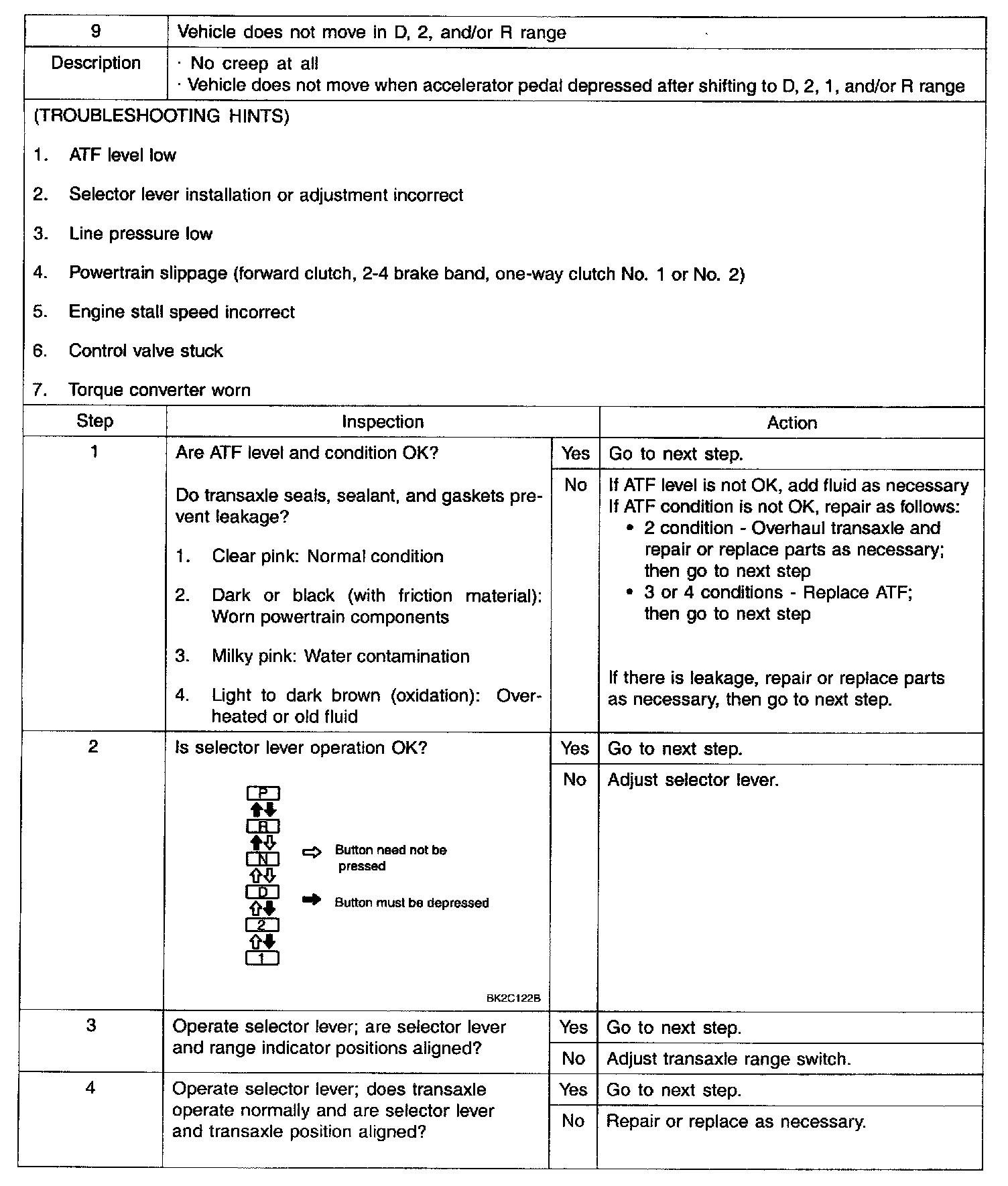 VEHICLE DOES NOT MOVE IN D, 2, AND/OR R RANGE