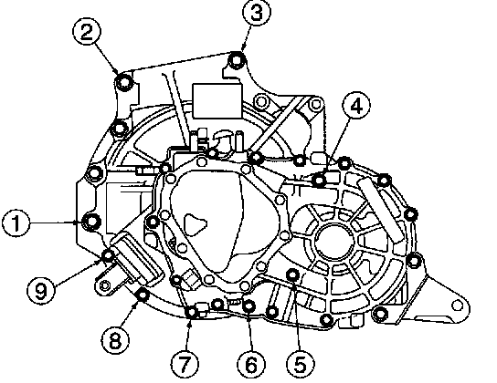 Lower bolt (SEA): (5), (6), (7), (8), (9) 28 - 38 ft. lbs. (37 - 25 Nm, 3.8 - 5.3 kg-m)