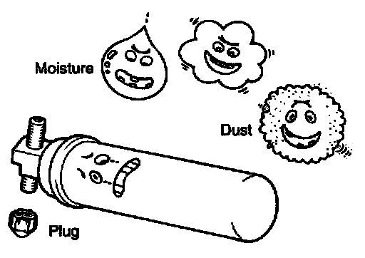 2. Cap or plug all lines and fittings as soon as they are opened to prevent the entrance of dirt and moisture.