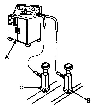 Recovery/Recycling/Charging System (A) to the high-pressure service port (B) as shown, following the equipment manufacturer's instructions.