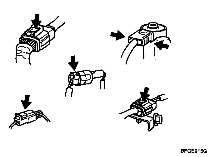 b. When the connector is disconnected: Check for missing terminal, crimped terminal or broken core wire by slightly pulling the wire harness. Visually check for rust, contamination, deformation and bend.