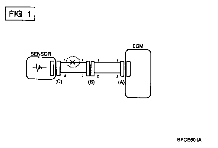 If an open circuit occurs (as seen in (FIG. 1)), it can be found by performing Step 2 (Continuity Check Method) or Step 3 (Voltage Check Method).