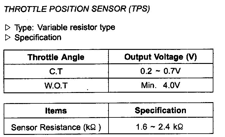 Throttle Position Sensor: Specifications