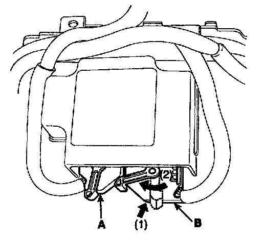 6. Disconnect the SRSCM harness connector (A) and (B) from the SRSCM.