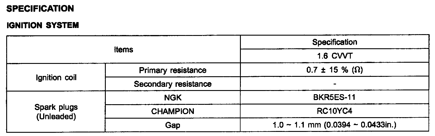 Ignition System Specification:
