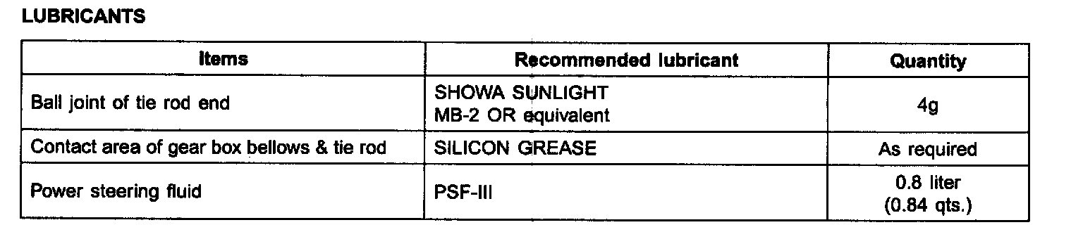 Fluid Type Specifications