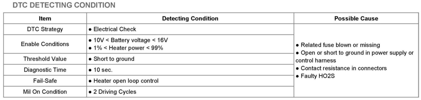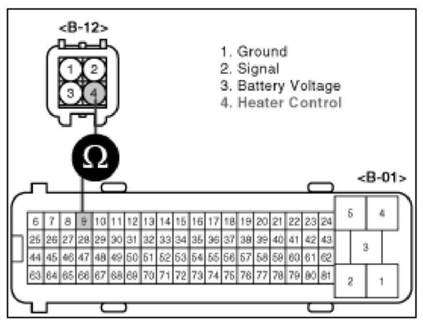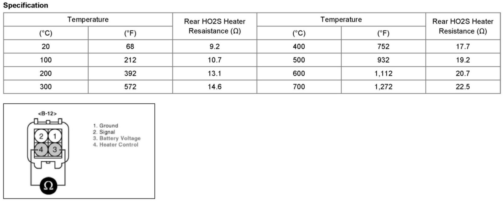 The normal operating temperature of the HO2S(Heated Oxygen Sensor) ranges from 350 to 850 degrees C (662 to 1562 degrees F). The HO2S heater greatly decreases the amount of time required for fuel control to become active. The PCM provides a pulse width modulated control circuit to adjust current through the heater. When the HO2S is cold, the value of the resistance is low and the current in the circuit is high. On the contrary, if the temperature in the resistor of the sensor rises, the current drops gradually.
