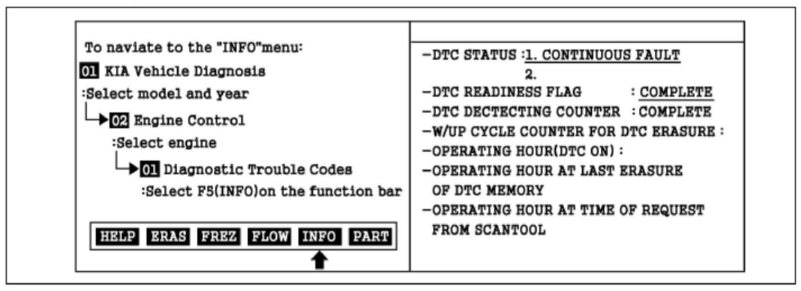 2. Press F5(INFO) to select DTC information from the DTCs menu