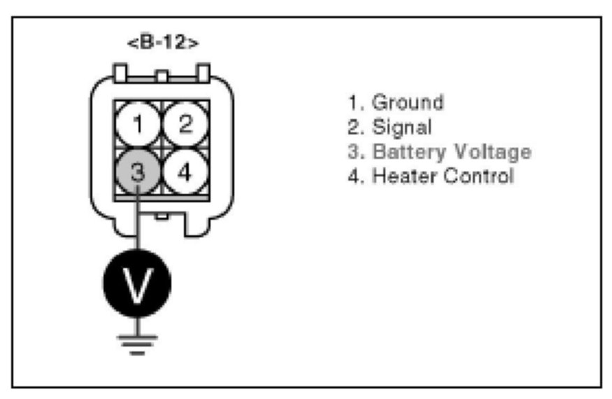 4. Measure voltage between terminal 3 of the HO2S heater harness connector and chassis ground.
