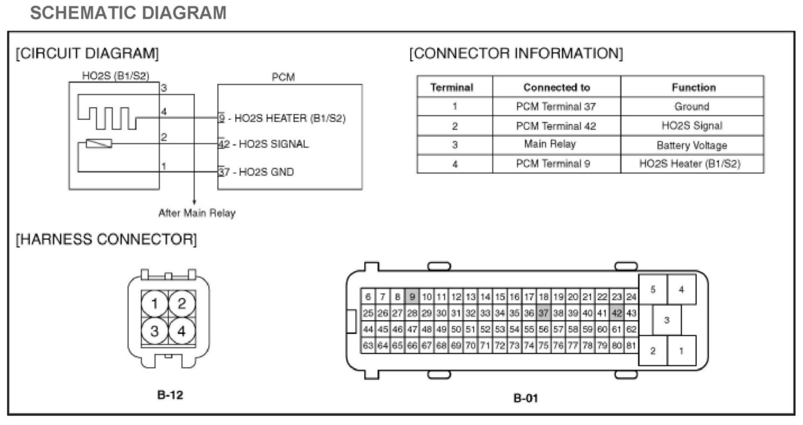 PCM sets DTC P0037 if the PCM detects that the rear HO2S heater control line is short to ground.