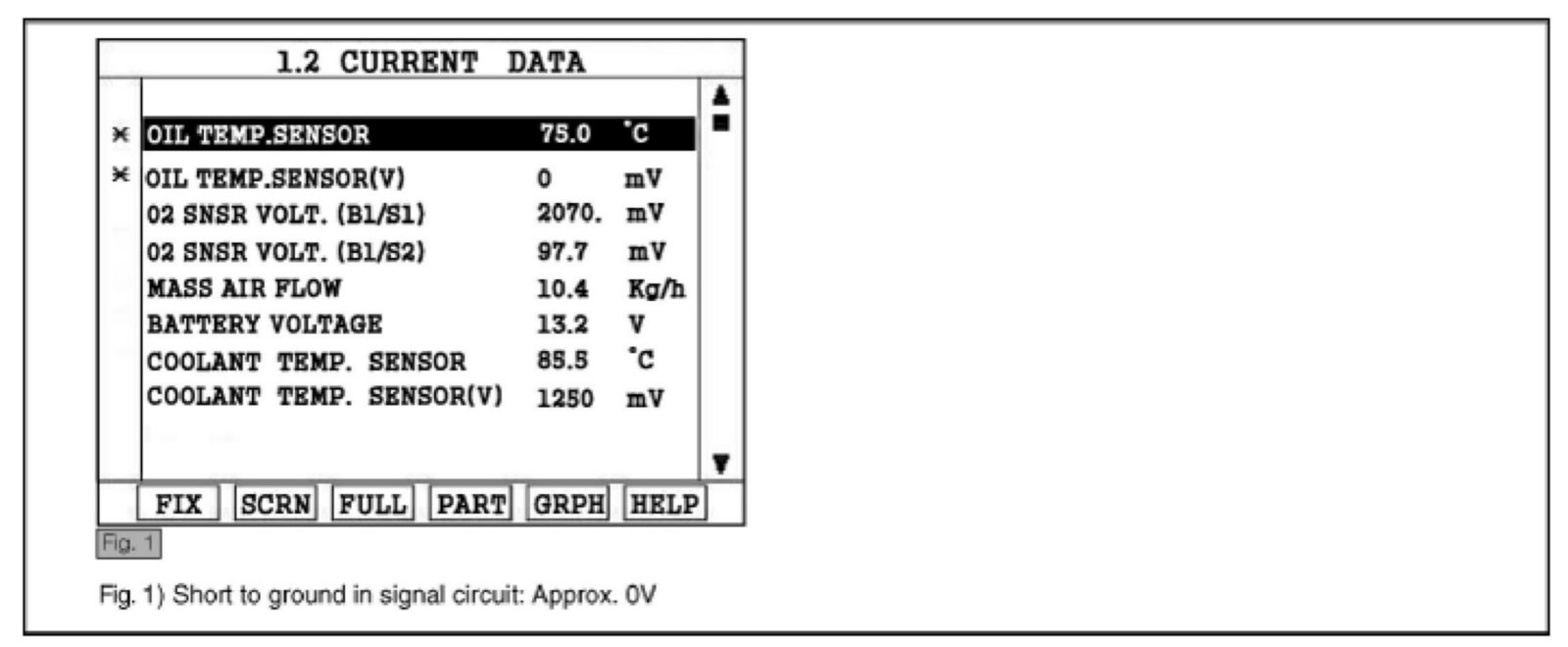 3. Connect Scantool and monitor the "OIL TEMP. SENSOR(V)" parameter on the Scantool data list.