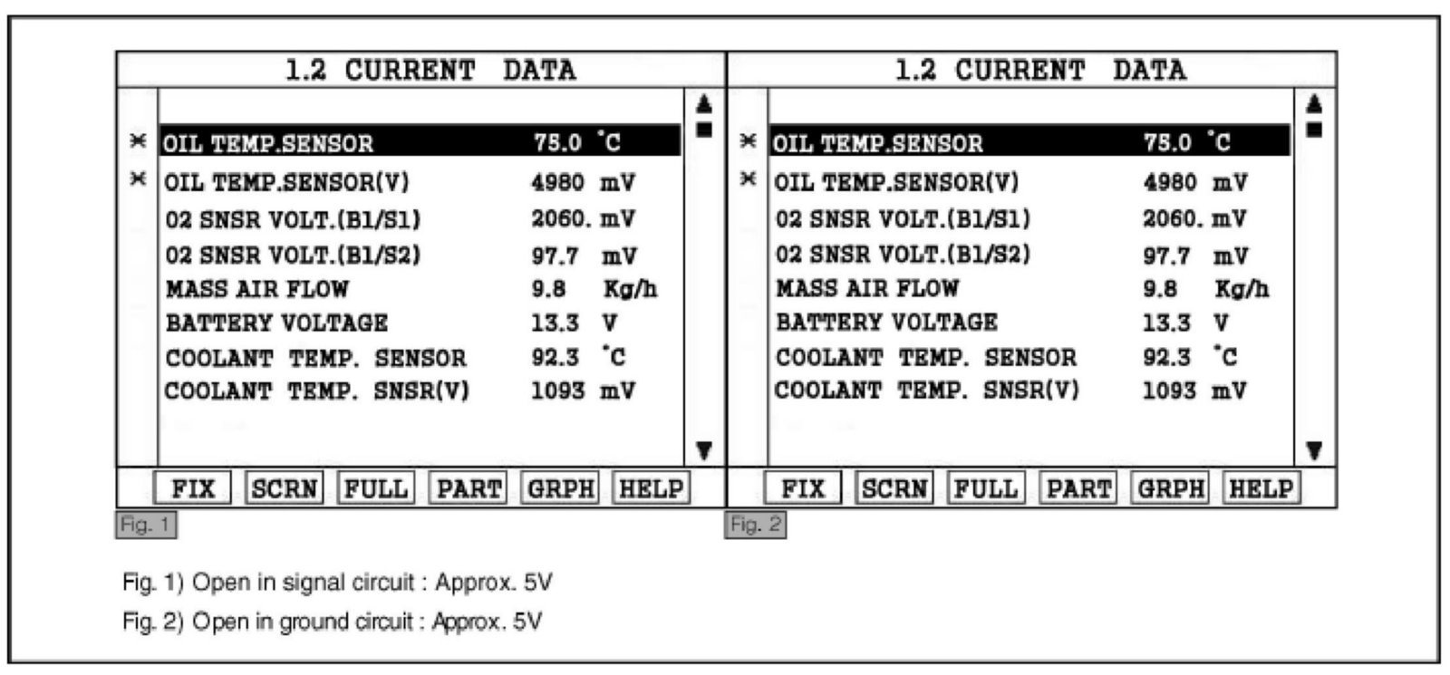 3. Connect Scantool and monitor the "OIL TEMP. SENSOR(V)" parameter on the Scantool data list.
