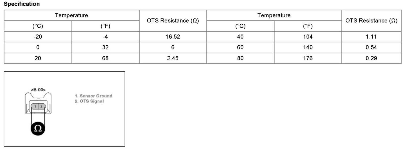 The fluid of the CVVT is the engine oil and its density changes according to the engine oil temperature. At this time the Oil Temperature Sensor (OTS) helps compensation against the temperature differences. The Oil Temperature Sensor measures the engine oil temperature before the engine oil comes into the Oil-flow Control Valve (OCV).According to the measured temperature, the Engine Control Module (PCM) compensates the oil-flow control valve operation time.