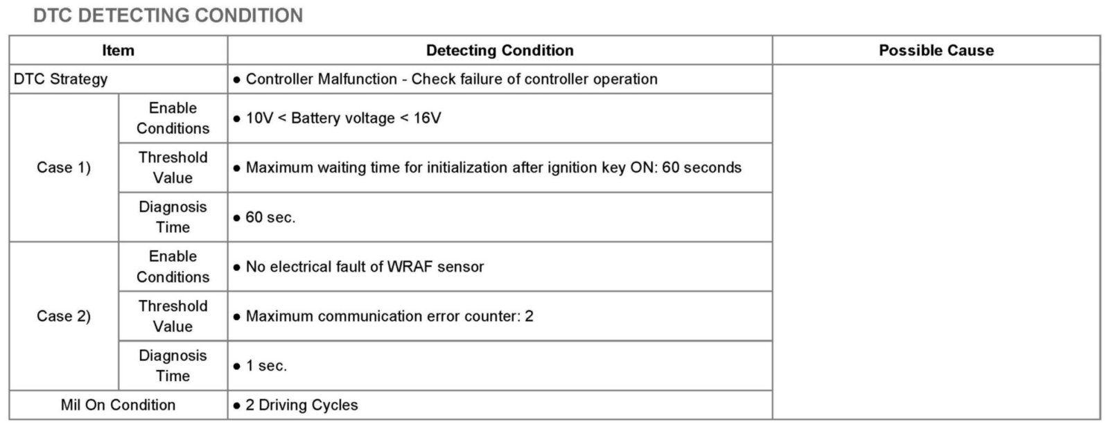 1. History (Not Present) fault : DTC occurred but has been cleared.