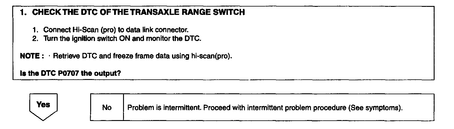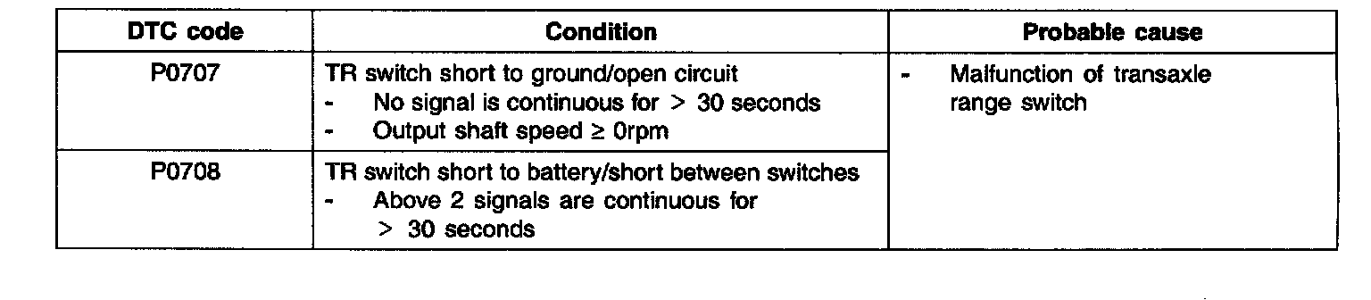 DTC P0708 TRANSAXLE RANGE SWITCH (TR SWITCH)