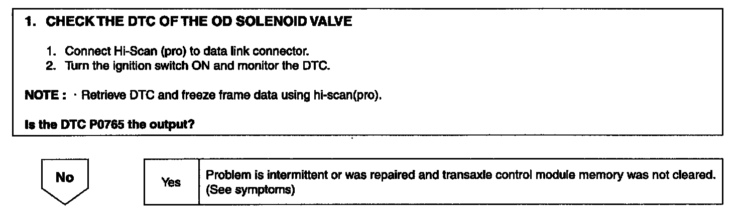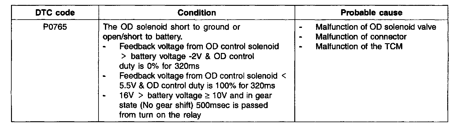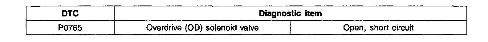 DTC P0765 OVERDRIVE (OD) SOLENOID VALVE