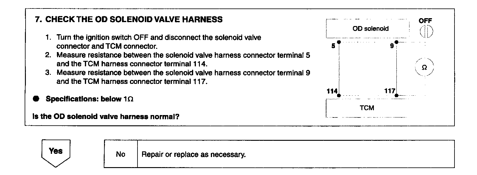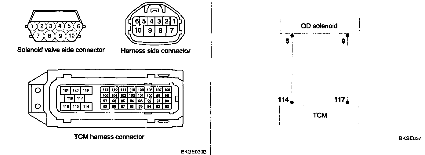 The OD solenoid is operated at the 3rd, 4th gear.