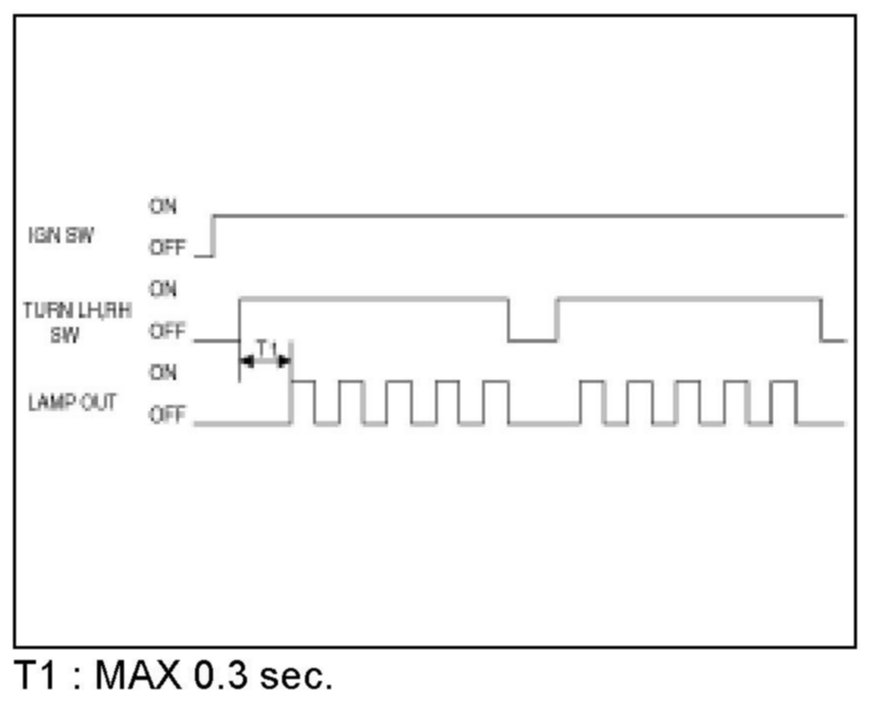 3. When one of the front or rear turn signal lamps is broken, the turn signal will blink at double frequency. Period : More than 120 cycle/min.