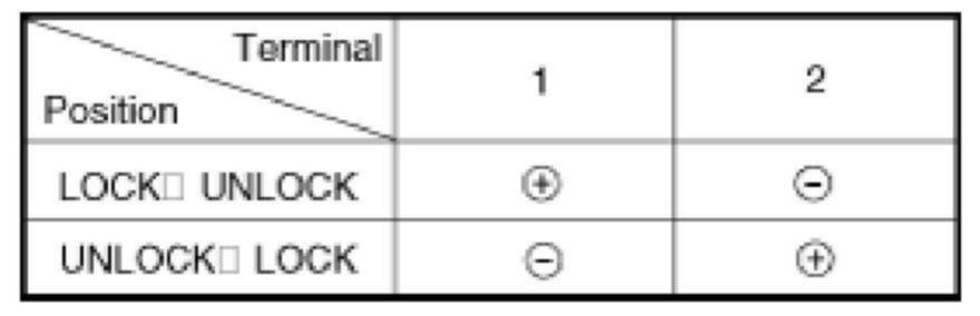 3. Check actuator operation by connecting power and ground according to the table. To prevent damage to the actuator, apply battery voltage only momentarily.