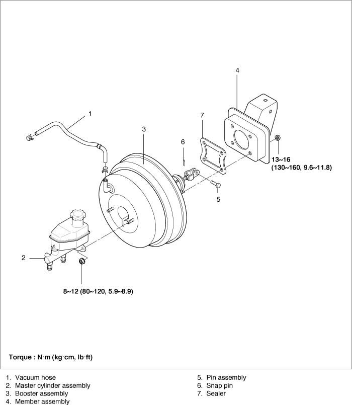 1. Adjust push rod length of the booster, and then install the seal on the booster assembly.
