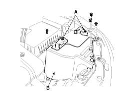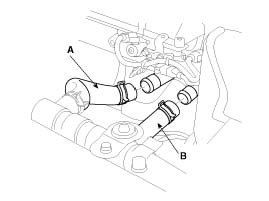 4. Remove the upper radiator hose (A) and lower radiator hose (B).