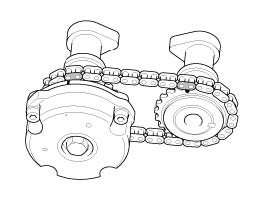 1) Align the camshaft timing chain with the intake timing chain sprocket and exhaust timing chain sprocket as shown.