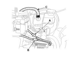 10. Disconnect the hose (B) of the PCSV (Purge Control Solenoid Valve) side.