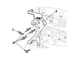 14. Remove the bolts (B, C) and power steering pump bracket (A).