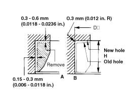 2. Enlarge the seat ring hole of cylinder head so that matches the specified cylinder head hole inner diameter of new valve seat ring.