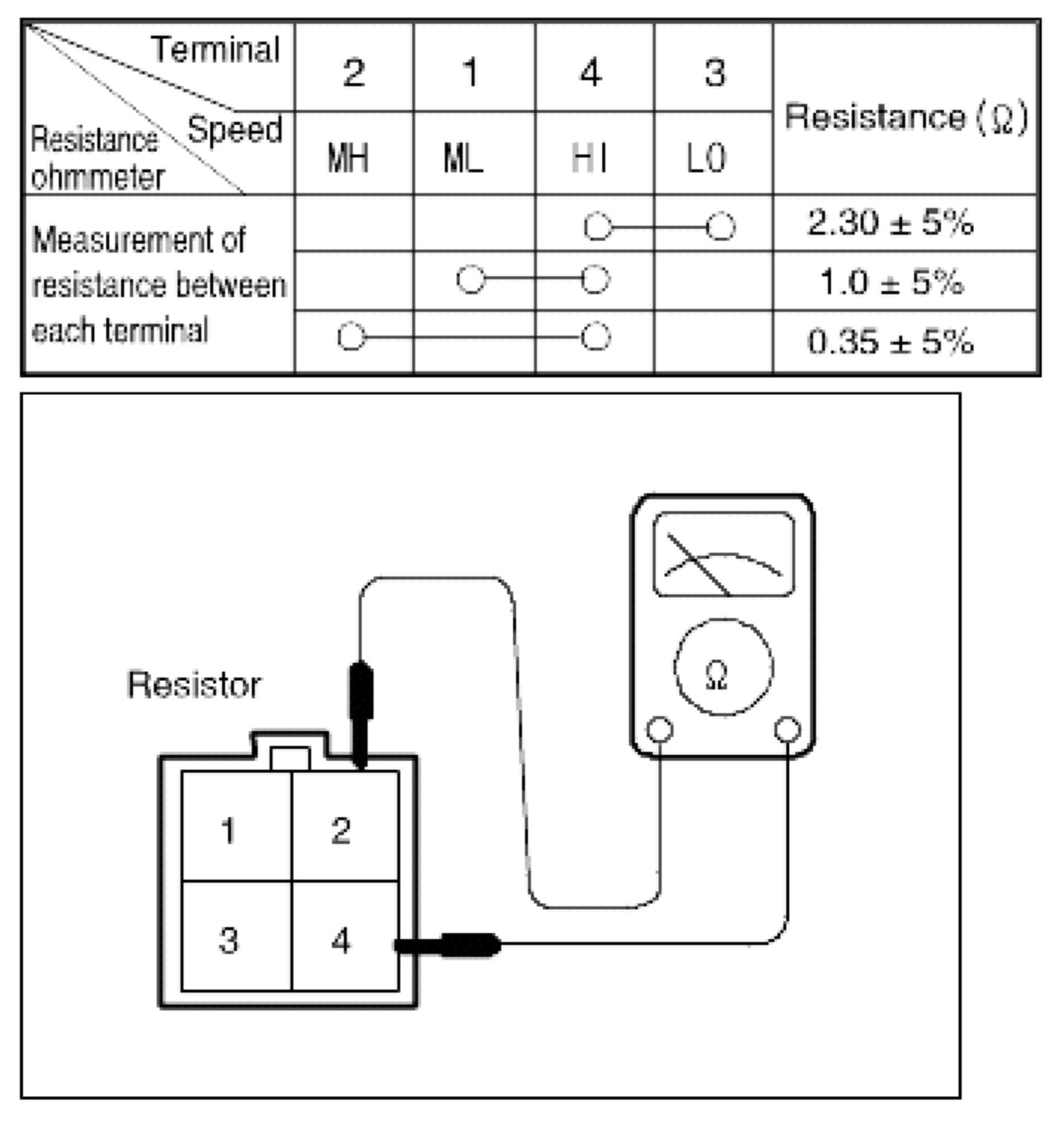 1. Measure terminal-to terminal resistance of the blower resistor.