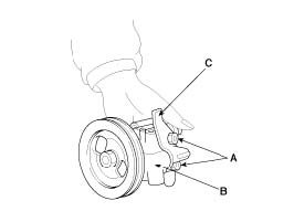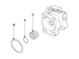 1. Remove two bolts (A) from the oil pump body (B), and then remove the suction pipe (C) and O-ring.