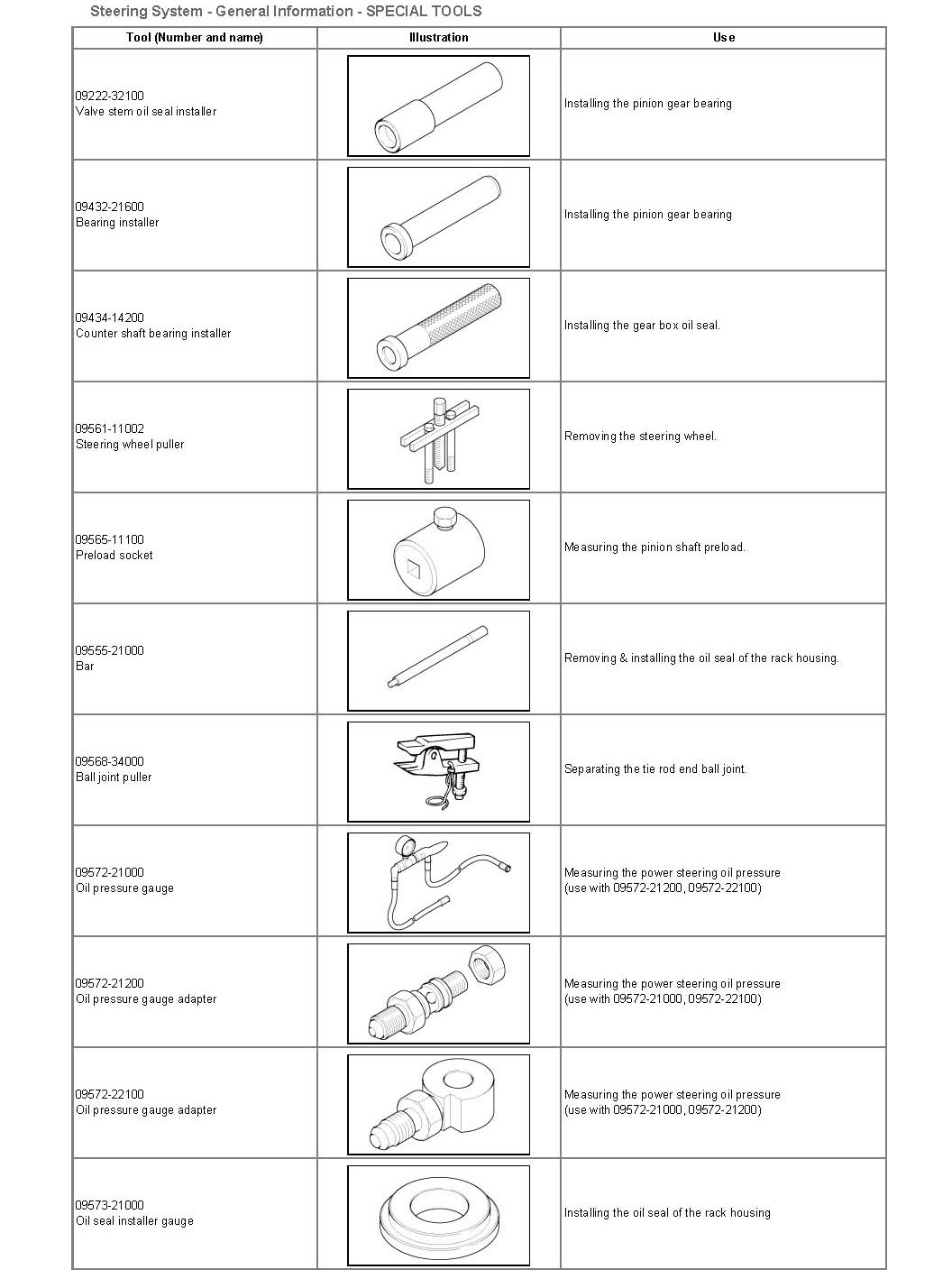 Steering: Tools and Equipment
