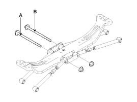 6. Remove the two rear suspension arm-to-cross member bolts (A, B).