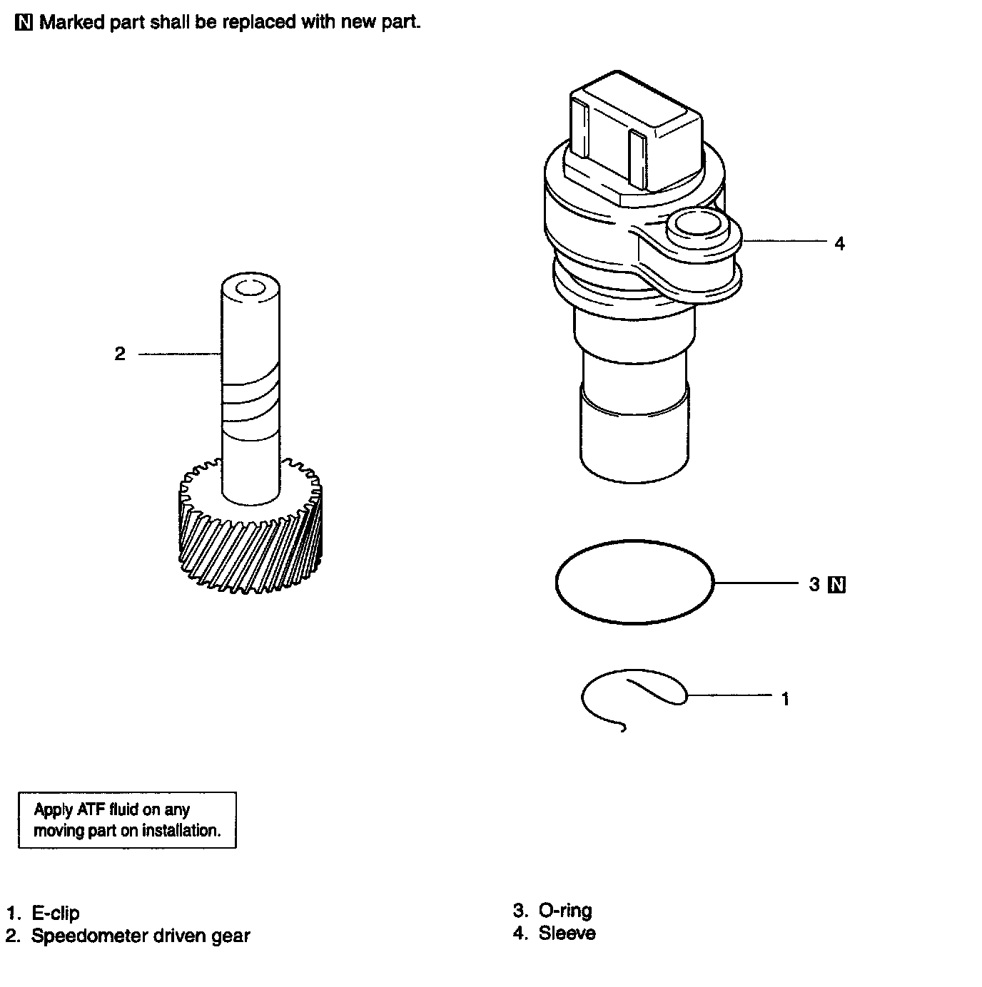Apply gear oil sparingly to the speedometer driven shaft and insert the shaft.