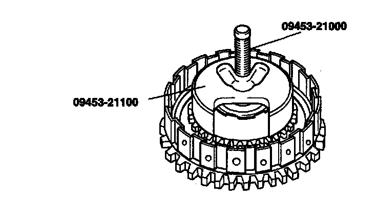 6. Compress the clutch return springs using special tools, 09453-21100 and 09453-21000, then install the clutch spring retainer snap ring.